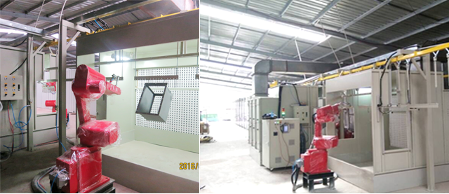 该工程由喷涂机器人767彩票、机器人底座、机器人同步追踪系统、工件检测系统、机器人自动喷漆柜、自动吹灰系统、自动喷防锈油系统、自转机构、悬挂线二次治具改造、喷枪、隔膜泵、防渗漏托盘、油压系统、电控系统、装挡板小车(挡板)、技术资料、备件和易损件等设备组成。