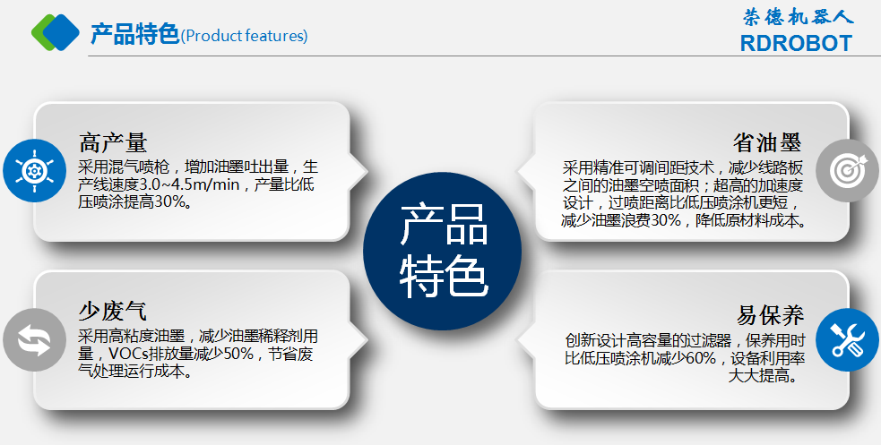 相比较低压喷涂技术,767彩票新型的高速喷涂设备采用精准可调间距技术、高粘度技术、高速机械臂等先进技术,减少油墨过喷和空喷,产量较低压喷涂提高了30%,无废水排放,不用频繁更换过滤棉,适用于高粘度油墨,减少油墨稀释剂用量,VOCs排放量减少20%,从源头减少污染物,更加环保。